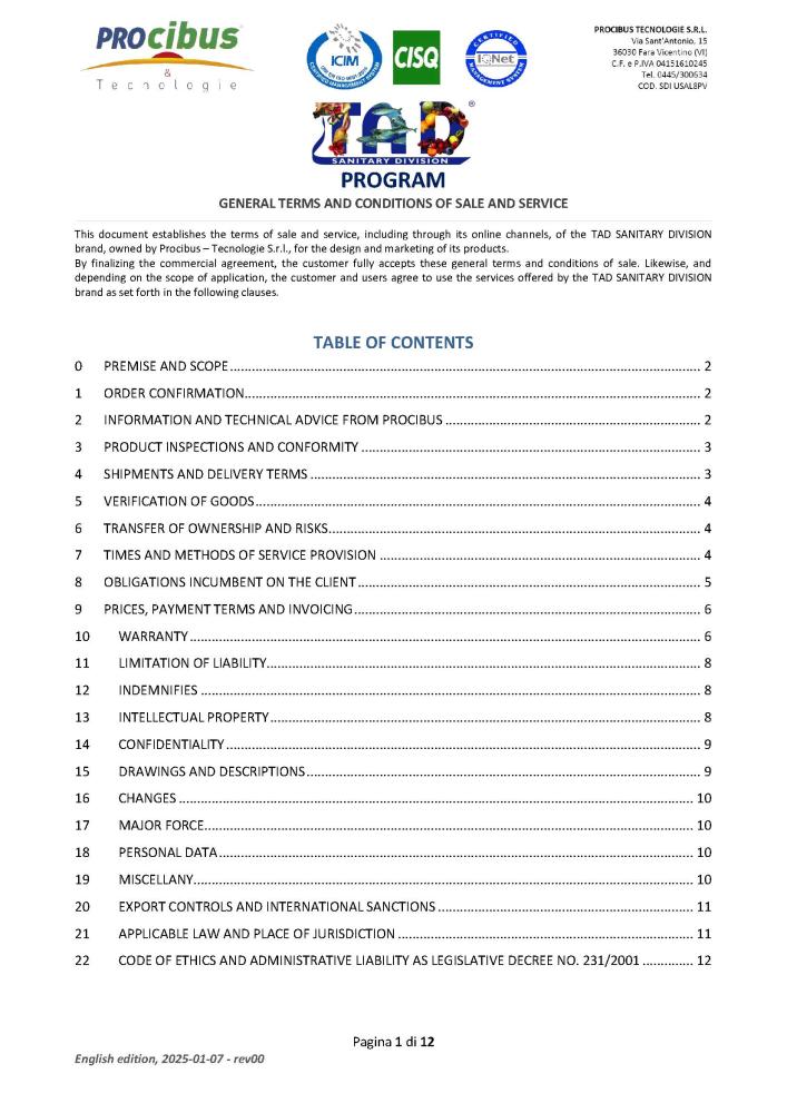 At the following link you can download the document containing the general terms of sale and service for TECNICAPOMPE brand products: